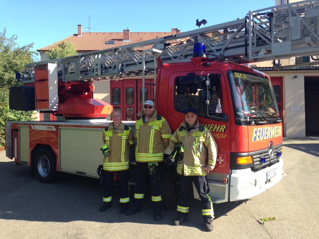 Dr. Gunther Schlöffel, Jörg Schlachter und Felix Erhardt haben diese Ausbildung erfolgreich absolviert und werden nun im Einsatzfall auch die Drehleiter bedienen.