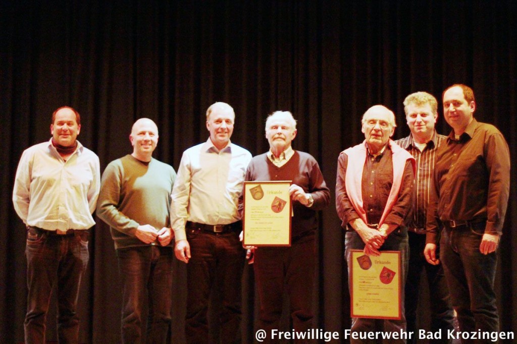 Bei der Weihnachtsfeier der Feuerwehr Bad Krozingen (Kernstadt) konnten zwei Urgesteine in der Feuerwehr im Berichtsjahr 2014 für langjährige Mitgliedschaft geehrt werden.