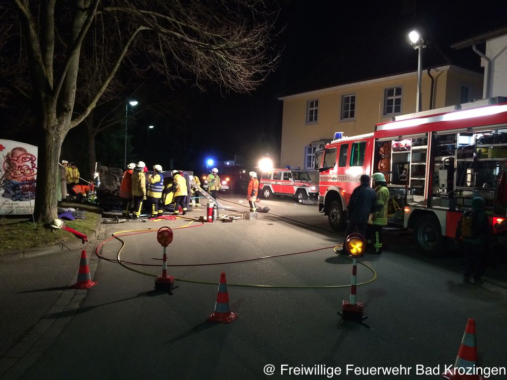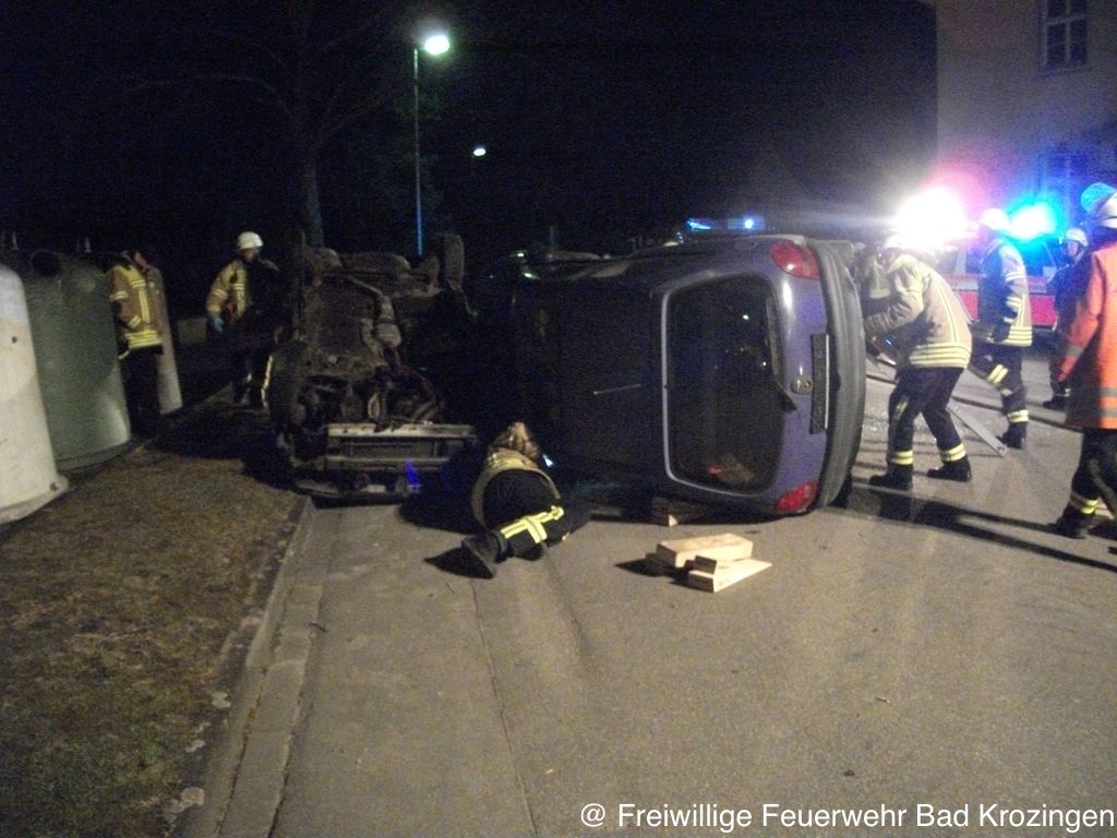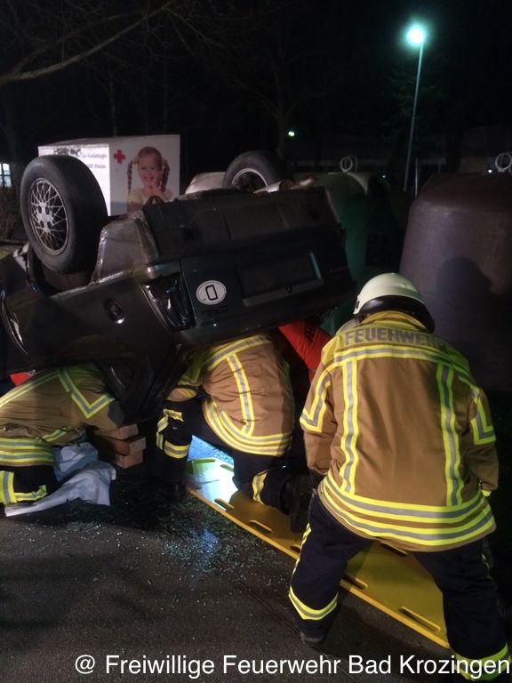 Die Befreiung und Rettung der verletzten Personen gestaltete sich besonders schwierig, da ein Auto auf dem Dach lag, das zweite auf der Seite und ein schreiendes Kind im Auto eingeklemmt war. Die Fahrzeuge wurden zunächst mit Leiterteilen, Spanngurten und verschiedenem Unterbaumaterial, gesichert. Zeitgleich wurden die verletzten Insassen versorgt und Betreut.