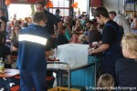 Und da wir die Gäste schon einmal aufzählen, sei auch nochmals das eingangs schon erwähnte Technische Hilfswerk (die Ortsgruppen Breisach und Müllheim) angeführt. In deren Bereich, überragt von einem Kran und weiter durch einen sehr grossen Geräte-LKW dominiert, konnte man sich beispielsweise Gerätschaften zur Personenortung ansehen und im Übungseinsatz erleben. Man konnte sein Kind schminken lassen, ihm ein T-Shirt mit dem gewünschten Aufdruck als Erinnerung verehren, oder es sich bei einem Eis, bei Kaffee und Kuchen gutgehen lassen. Meterlange Theken für Speisen und Getränke, von unzähligen fleißigen Händen betrieben, sorgten für das leibliche Wohl der Besucher.