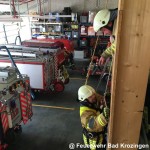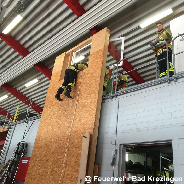 Vor kurzem fand die jährliche Unterweisung mit dem Big Fireliner statt. Dieser ist ein Multifunktionsgurt der den alten Feuerwehrhaltegurt ersetzt. Mit diesem Gurt kann sich ein(e) Feuerwehrmann/-frau in besonderen Gefahrensituationen selbstständig und ohne Fremdhilfe z.B. aus einer Brandwohnung abseilen. Dies erfordert natürlich regelmäßiges Training im Bereich Selbstrettung sowie in der Anwendung Feuerwehrspezifischer Knoten, um den Multifunktionsgurt auch praktisch anwenden zu können.