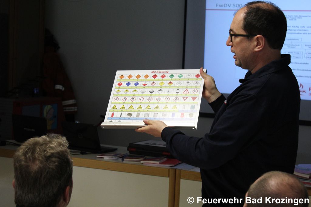 Welche Einsatzmöglichkeiten besitzt die örtliche Drehleiter, welche Fakten sind bei einem Brandeinsatz (einem Schwerpunktthema dieser Ausbildungseinheit) insbesondere zu beachten? Oder wenn, was der Autor nicht hoffen möchte, es doch einmal dazu kommen sollte, dass die Bad Krozinger Wehr einmal radioaktive Strahlung oder giftige, respektive erstickende chemische Substanzen messen müsste, über welche Ausstattung zur Realisierung (oder Quantifizierung) einer solchen Gefahr verfügt die Feuerwehr Bad Krozingen? Aus diesem Bereich stammt übrigens der als Artikelüberschrift verwendete Abkürzungswust: EX= Explosionsgefahr, OX= Gefahr der Brandförderung durch ein Zuviel an Sauerstoff, NOX= erstickende, brandlimitierende Wirkung eines Zuwenig davon und TOX (abgeleitet vom Begriff „toxisch“-also giftig). Insgesamt also eine für alle Teilnehmer höchst eindrückliche, ganztägige Ausbildungseinheit, welche in nun schon recht guter Tradition durch den Einsatz auch auswärtigen Ausbildungspersonales den Blick der Wehrangehörigen zu Weiten im Stande war.