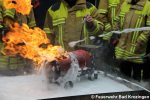 Einen Schwerpunkt bildete dabei der effektive Einsatz von Schaumlöschmitteln, der von zwei Kameraden der Kölner Berufsfeuerwehr vermittelt wurde. Die Ausbilder Jürgen Arens und Jörn Ahrens waren bereits am Vortag angereist und konnten am Abend des Freitag bereits etwa 30 aus Bad Krozingen und den Umlandgemeinden erschienenen Unterführern einen entsprechenden Einführungsvortrag anbieten. Wie und unter welchen Voraussetzungen kann welches Schaummittel zum Einsatz gebracht werden? Die praktische Beantwortung dieser Fragen sorgte dann auch am gesamten Samstag in regelmäßigen Abständen für recht spektakuläre Bilder am Gerätehaus der Bad Krozinger Kernstadtwehr.