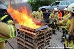 Direktes Aufbringen oder „Ablaufen- lassen“ , die verschiedenen Möglichkeiten und Taktiken, beispielsweise bei einem Keller- oder Tiefgaragenbrand oder dem Brand eines Tankfahrzeuges, wurden durch die Ausbilder mittels einer originalgetreuen, aber extrem verkleinerten Schaumanlage demonstriert und von den Übungsteilnehmern auch praktisch geübt. Für viele, auch für anwesende Führer und Unterführer, überraschende Unterschiede bei Löscherfolg und Materialeinsatz konnten so aufgezeigt und verinnerlicht werden.