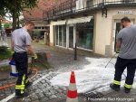 Die Feuerwehr sperrte den Gefahrenbereich ab und streute Bindemittel auf die betroffen Stellen. Nachdem dieses aufgenommen war, wurde großflächig ein spezielles Reinigungsmittel aufgetragen und mit Hilfe eines Heißwasser-Hochdruckreiniger eingearbeitet.