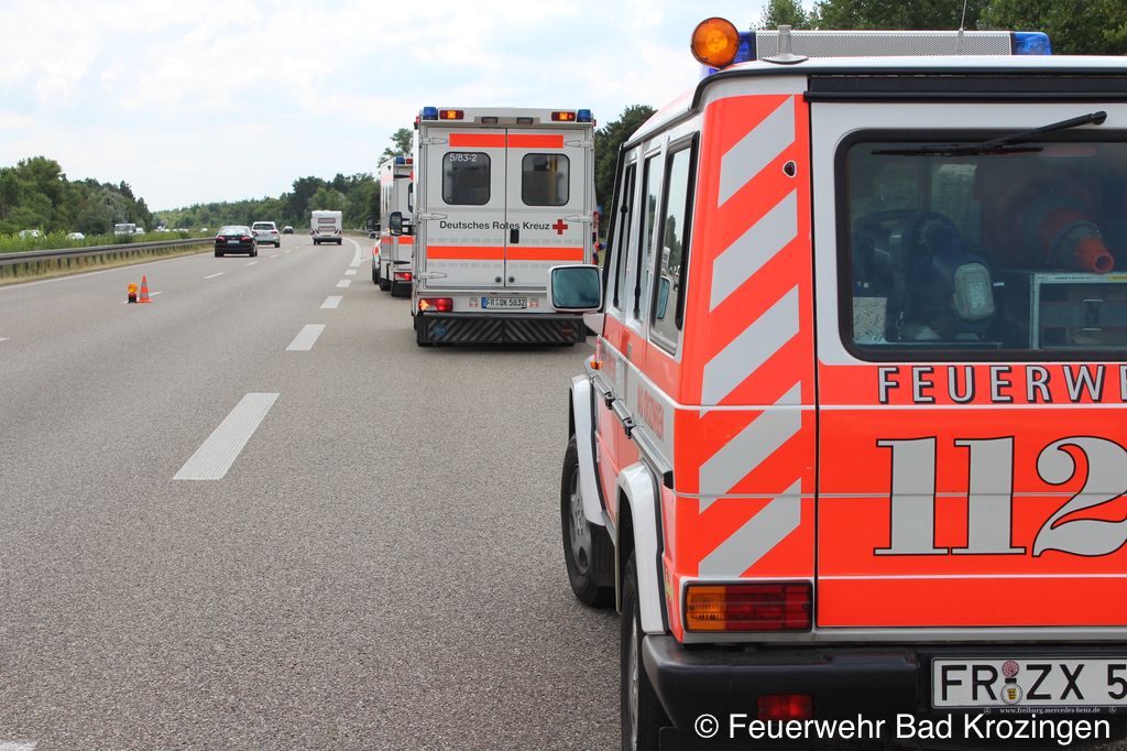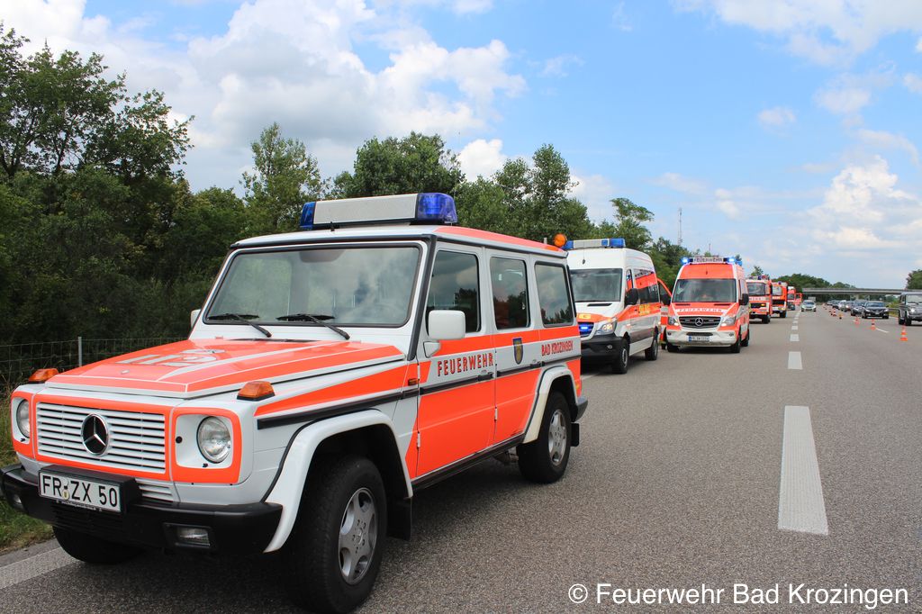 Am Nachmittag wurde die Feuerwehr Bad Krozingen mit dem Alarmstichwort „H3 Person in Zwangslage mittel“ zu einem Verkehrsunfall auf die BAB5 alarmiert. Nachdem der Rüstzug sowie die Abteilung Hausen ausgerückt waren, kam bereits die erste Meldung dass sich keine Personen mehr in dem Fahrzeug befinden.