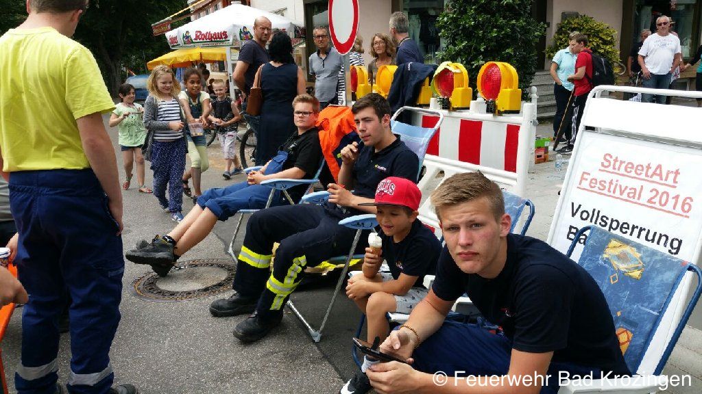 Straßenkünstler aus Bad Krozingen und der Region verwandelten beim Street-ARt-Festival die Straßen in Bad Krozingen in eine kunterbunte Kunstmeile. Die Jugendfeuerwehr unterstützte die Organisatoren der Veranstaltung.