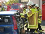 Der folgende Tag, beginnend mit einem gemeinsamen Frühstück aller 70 Lehrgangsteilnehmer, beinhaltete ein weites Spektrum an Themen aus der Einsatztätigkeit einer Feuerwehr. Von Grundtätigkeiten im Löscheinsatz, vor allem natürlich für Neu- und „Quereinsteiger“ gedacht, zur technischen Hilfe bei Verkehrsunfällen, einer speziellen Schulung für Maschinisten, für „First- Responder“- Kräfte erstreckte sich das für voreingeteilte Gruppen angebotene Ausbildungsprogramm. Praktische Übungen stellten dabei den Kernteil dar, egal ob es sich um die Handhabung von Strahlrohren, den Aufstellungsort und den Einsatz einer Drehleiter vor Ort, oder die richtige Technik und Taktik im Einsatz zur Rettung einer oder mehrerer Personen handelte.