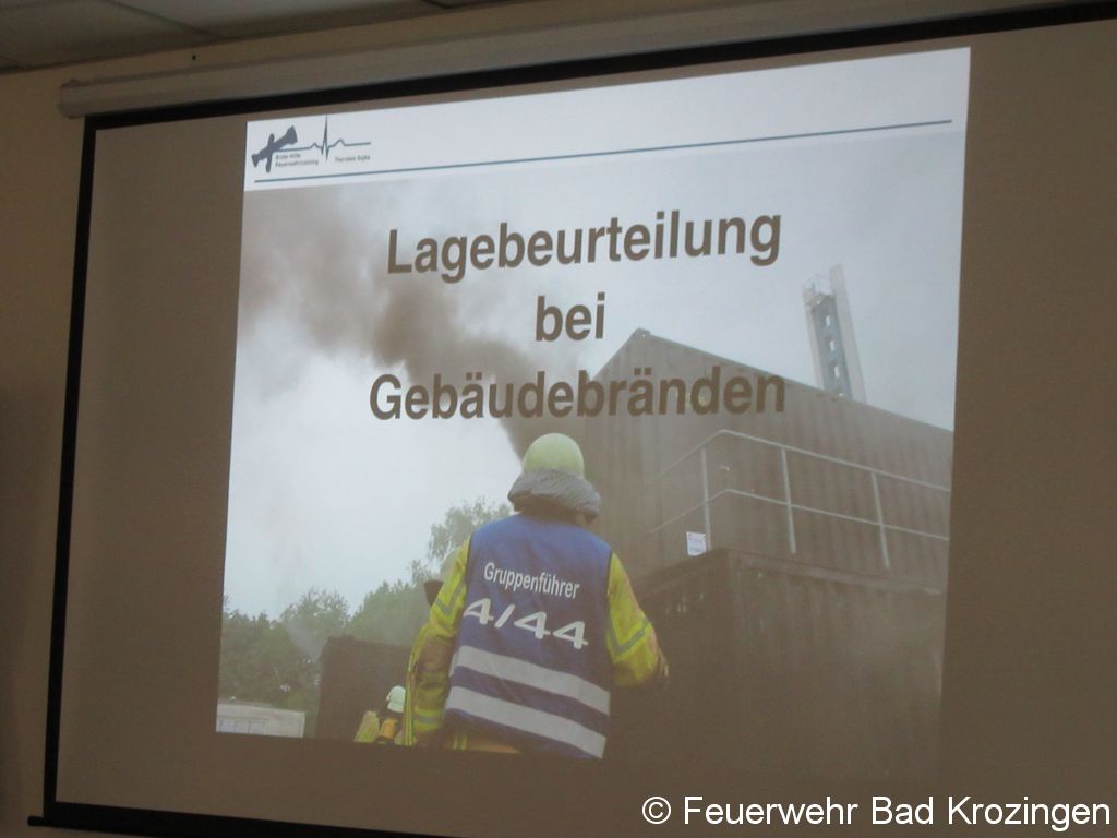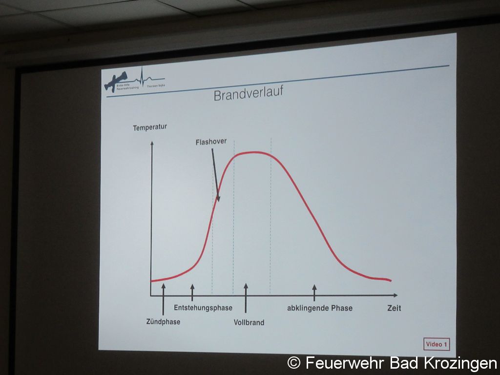Auf inzwischen schon wohl bewährte Weise gestaltete sich die Ausbildungstätigkeit der Feuerwehr Bad Krozingen am Freitag den 21. und Samstag den 22.10.2016. Im Vorgang des für den Samstag angesetzten „Ausbildungssamstag“ trafen sich Atemschutzgeräteträger und Führungspersonal der Wehr bereits am Freitagabend, um sich von dem national und europaweit tätigen Ausbilder Thorsten Sojka näher in die Lagebeurteilung bei Bränden einführen zu lassen. Ein voll besetzter Lehrsaal beschäftigte sich intensiv mit den (heute eher in ihrer englischen Form als „Flashover“ oder „Backdraft“ bezeichneten) Erscheinungen in und um einen Brandraum. Wie der Ausbilder betonte, sei es wichtig, diesen heute so gebräuchlichen Anglizismen eine eindeutige deutsche Bedeutung zu hinterlegen, und so zu einer einheitlichen Sprachregelung an der Einsatzstelle zu finden. Anhand von, vor allem amerikanischem und schwedischem, Videomaterial und darauf folgenden Versuchen an Holzmodellen konnte er die entsprechenden Zustände sowie den Brandverlauf insbesondere bei Zimmerbränden eindrucksvoll demonstrieren.