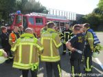 Die Gruppen- und Zugführer der Wehr vertieften indessen das bereits am Vorabend angerissene Thema: „Lese“ einen Brand anhand von Feuererscheinung, Rauchentwicklung und Gebäudegegebenheiten (um nur Beispiele zu nennen) richtig, um anhand Dessen deine eigenen taktischen Entscheidungen treffen zu können! Ein sich von 08:00 Uhr bis 15:00 Uhr erstreckender, geistig und manchmal auch körperlich durchaus intensiver Tag also, der den insgesamt 70 Teilnehmern da geboten wurde. Wie sich dabei herausstellte, muss sich mancher von gewissen Regeln, die er(oder sie!) teilweise schon vor vielen Jahren gelernt hat, verabschieden, weil sie entweder im Licht modernerer Erkenntnisse geradezu als gefährlich einzustufen sind, oder der heute üblichen Praxis, den heute vorkommenden Anforderungen entsprechend als zu zeitaufwändig erscheinen.