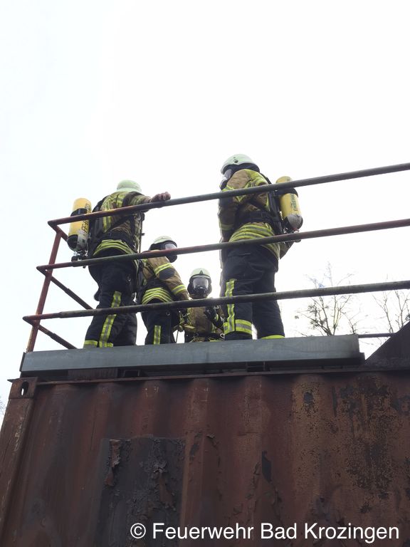 Nach einer kurzen Theorieeinheit ging es am Morgen dann recht bald ans Eingemachte. Unter schwerem Atemschutz galt es, sich in den mehrere hundert Grad heißen Containern vorzukämpfen und die jeweiligen Brandherde zu löschen. Nach mehreren Durchgängen waren die Teilnehmer trotz der Strapazen froh, einen interessanten und lehrreichen Ausbildungstag hinter sich gebracht zu haben.