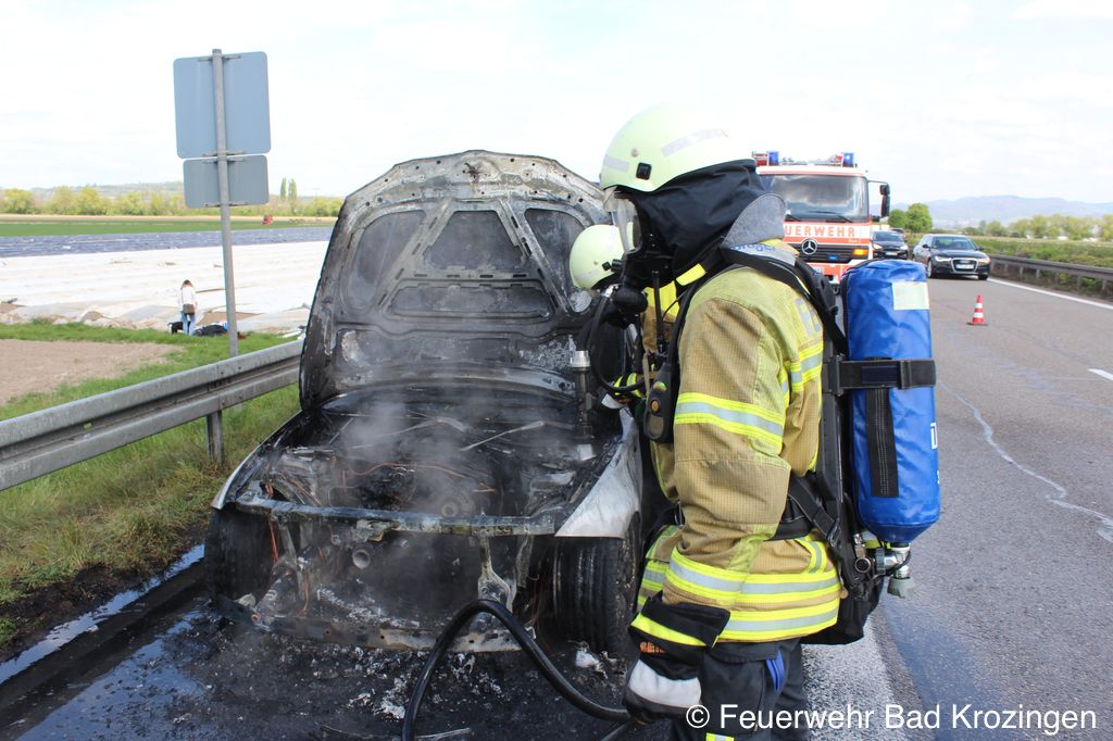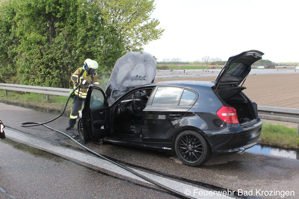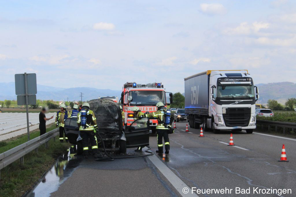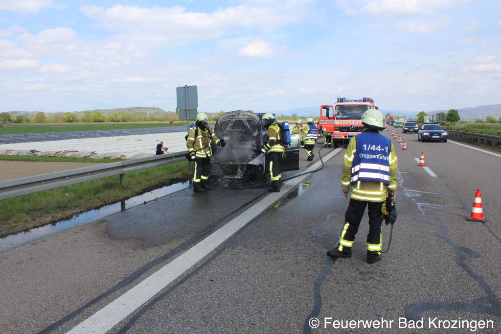 Donnerstagnachmittag gegen 15:00 Uhr wurde die Freiwillige Feuerwehr Bad Krozingen zu einem PKW-Brand auf die Bundesautobahn alarmiert. Beim Eintreffen stand der Motorbereich bereits im Vollbrand. Dieser konnte rasch gelöscht werden sodass die Einsatzkräfte kurz darauf wieder einrücken konnten.