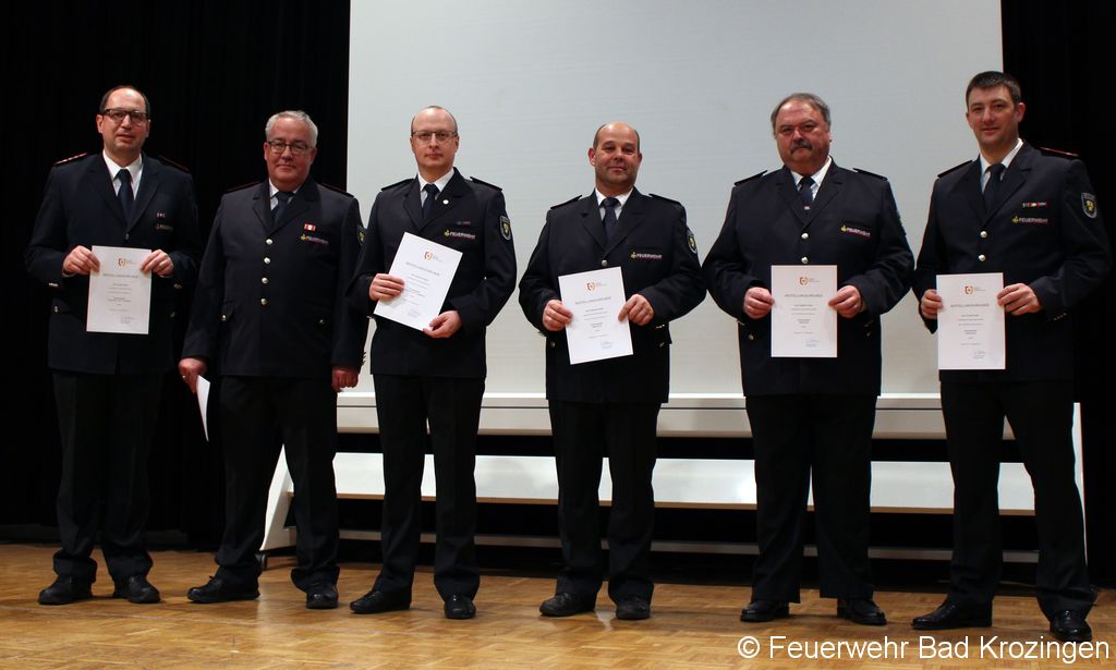 Für die Feuerwehr Bad Krozingen sind das: Jürgen Bleile, Andreas Kepper und Clemens Pessel als Ausbilder für Truppmann- und Truppführerlehrgänge, Andreas Kepper des Weiteren für den Bereich Sprechfunkausbildung, Florian Eckert für die Atemschutzausbildung und Siegfried Leiser so wie Gebhard Felder als Maschinistenausbilder.