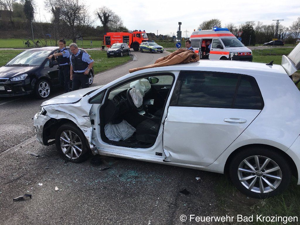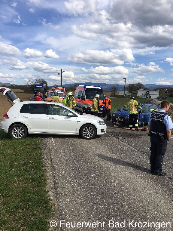 Zu einem Verkehrsunfall auf der K4939 kurz vor dem „Schlatter Kreisel“ wurde die Feuerwehr Bad Krozingen am heutigen Nachmittag alarmiert. Auf der Kreisstraße waren zwei PKW kollidiert, der Fahrer eines Fahrzeugs war eingeschlossen. Nach Absprache mit dem Rettungsdienst befreite die Feuerwehr den Fahrer durch den Kofferraum patientenschonend  aus seiner misslichen Lage.  Die Feuerwehr war mit 5 Fahrzeugen und 16 Einsatzkräften an der Unfallstelle