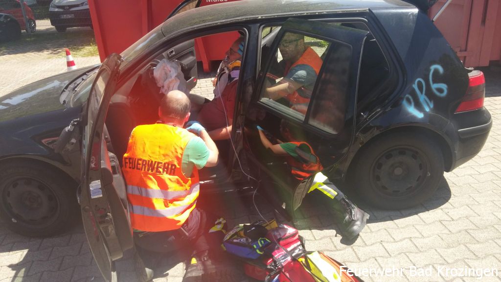 Im Juni fand die Ausbildung zum „Helfer vor Ort“ statt, auch First Responder genannt. Nachdem die fünf Teilnehmer aus Bad Krozingen und Umgebung bereits im November den Lehrgang zum Feuerwehrsanitäter (Sanitätshelfer) erfolgreich absolviert haben, ging es in dem 24 stündigen Lehrgang nochmals in die praktische Ausbildung. Nach einer kurzen Wiederholung der Anamnese-Schemata wurden in der ersten Lehrgangshälfte das Thema „Internistische Notfälle“ durchgenommen. Vom Herzinfarkt bis zum Schlaganfall wurden alle möglichen internistischen Notfälle in Fallbeispielen ausgebildet.