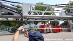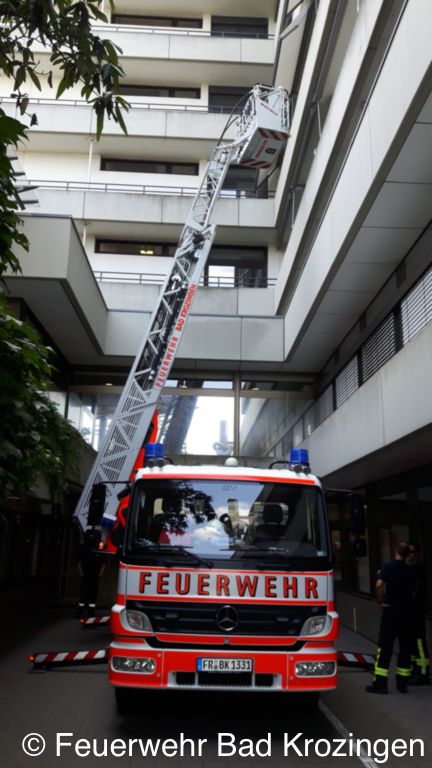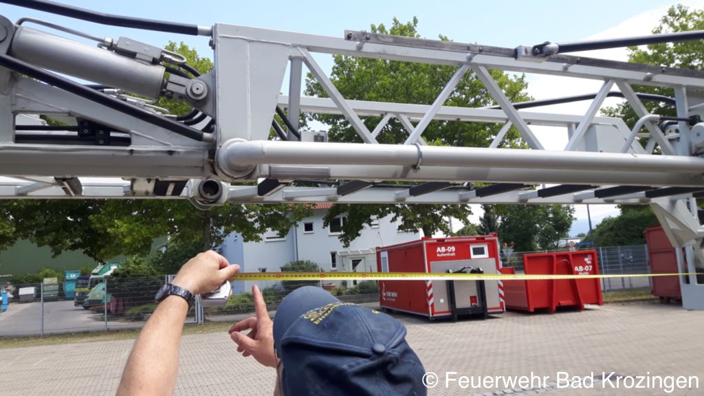 Nach dem theoretischen Teil am Vormittag ging es bei hochsommerlichen Temperaturen in das Stadtgebiet um die Theorie in die Praxis umzusetzen. Es wurden einige Kliniken u.a. das Universitäts-Herzzentrum, sowie verschiedene Objekte im Kernort und den Ortsteilen angefahren und die Drehleiter in Stellung gebracht.