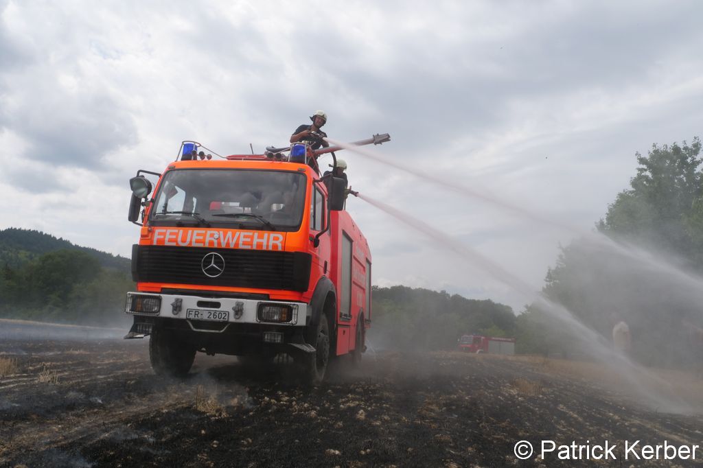 Am vergangenen Mittwoch, 08. August 2018, wurde um die Mittagszeit die Feuerwehr Ehrenkirchen zu einem größeren Vegetationsbrand östlich von Ehrenstetten alarmiert. Aufgrund der Alarmmeldung wurde durch die integrierte Leitstelle zeitgleich die Feuerwehr Bollschweil und das Tanklöschfahrzeug der Feuerwehr Bad Krozingen alarmiert. Als die Feuerwehr an der Einsatzstelle eintraf standen mehrere Hektar Stoppelfelder in Vollbrand. Um die Ausdehnung des Brandes zu verhindern, löschten die Einsatzkräfte umgehend die Saumbereiche mit dem auf den Löschfahrzeugen mitgeführten Wasser ab.
