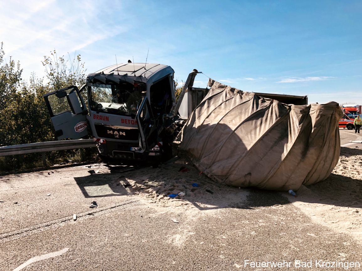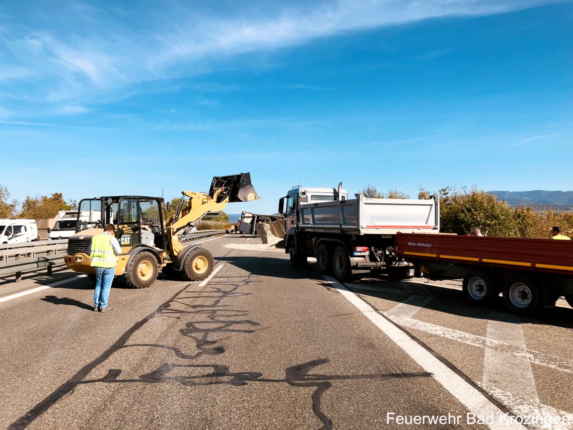Gegen 11:30 wurde auf der BAB5, Anschlussstelle Bad Krozingen, ein schwerer LKW-Unfall mit zwei eingeklemmten Personen gemeldet. Da die Unfallstelle vor Bad Krozingen liegen würde, rückte zuerst die Freiwillige Feuerwehr Neuenburg aus. Als kurz darauf klar war, dass sich die Einsatzstelle auf Gemarkung Bad Krozingen befand, wurden wir nachalarmiert.