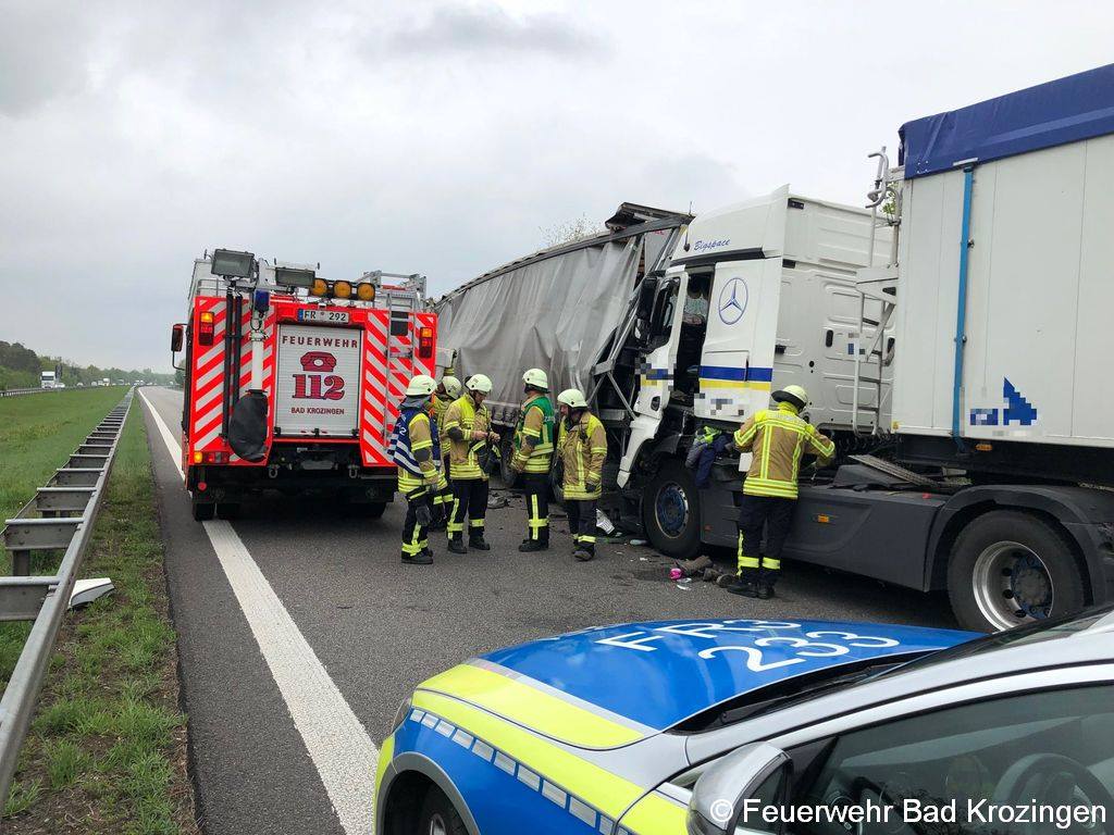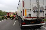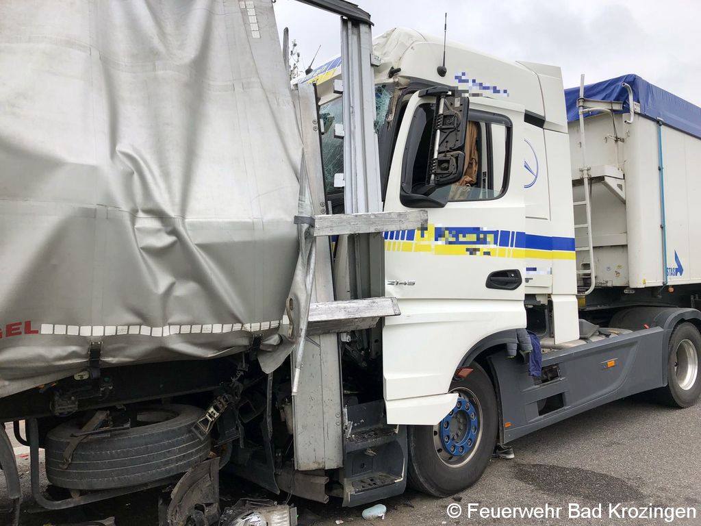 Um 12:46 wurden wir zu einem schweren LKW-Unfall alarmiert. Die Fahrerin des auffahrenden LKWs musste patientengerecht aus dem Führerhaus gerettet werden. Ebenfalls im Einsatz die Kollegen des DRK Kreisverband Müllheim e.V.sowie die Polizei Freiburg