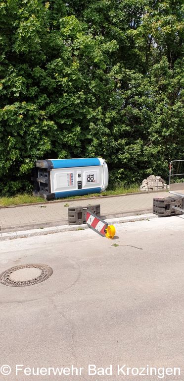 Einen kurzen Arbeitseinsatz hatten wir heute Mittag. Vermutlich ein paar Spaßvögel warfen den kompletten Baustellenzaun samt Toi Toi um.
