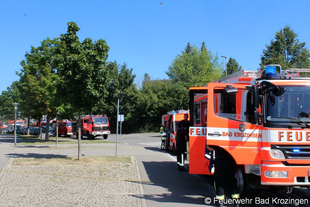 Um 10.30 Uhr wurde die Feuerwehr Bad Krozingen mit den Abteilungen Biengen und Tunsel mit dem Stichwort Gebäudebrand alarmiert. In der Zwischendecke der Toilette des Gymnasiums war Rauch und Schmorgeruch wahrnehmbar. Die Räumlichkeiten wurden durchsucht und per Wärmebildkamera kontrolliert, die Zwischendecke vorsorglich mit einen CO²-Löscher geflutet. Eine Elektrofirma wurde beauftragt, um die Beleuchtungselektronik zu kontrollieren, da es dort eventuell zu einem Kurzschluß gekommen war. Im Einsatz waren auch ein Rettungswagen des Malteser Hilfsdienstes Münstertal so wie die Polizei Freiburg
