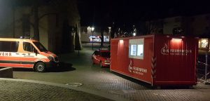Die „Corona“-bedingte Ausnahmesituation schien dem Schicksal für große Teile der Bad Krozinger Bevölkerung noch nicht genug zu sein. Zu allem Überdruss kam es zu einem Komplettausfall der Telefonanschlussversorgung sämtlicher Haushalte im Raum Bad Krozingen mit seinen Ortsteilen. Die Situation erforderte schnelles Handeln. Nach einer raschen Absprache zwischen dem Feuerwehrkommandanten Florian Eckert, dem Bürgermeister Volker Kieber und dem Kreisbrandmeister Alexander Widmaier, errichtete die Feuerwehr Bad Krozingen zahlreiche Anlaufstellen für betroffene Bürger. Es galt die mögliche Benachrichtigung von externer Hilfe, wie z.B. der Polizei, der Feuerwehr oder des Rettungsdienstes, für die Bürger für den Fall einer eventuell eintretenden Not-Situation trotz des Telefonausfalls zu gewährleisten. Die eingerichteten Anlaufstellen waren dabei mit Funk- oder teilweise noch funktionierenden Telefon-Verbindungen ausgestattet. Auf dem Rathausplatz wurde ein Container zu diesem Zwecke eingerichtet und auch die jeweiligen Feuerwehrgerätehäuser in den Ortsteilen sowie die Wache in Bad Krozingen wurde umgehend und ständig besetzt.