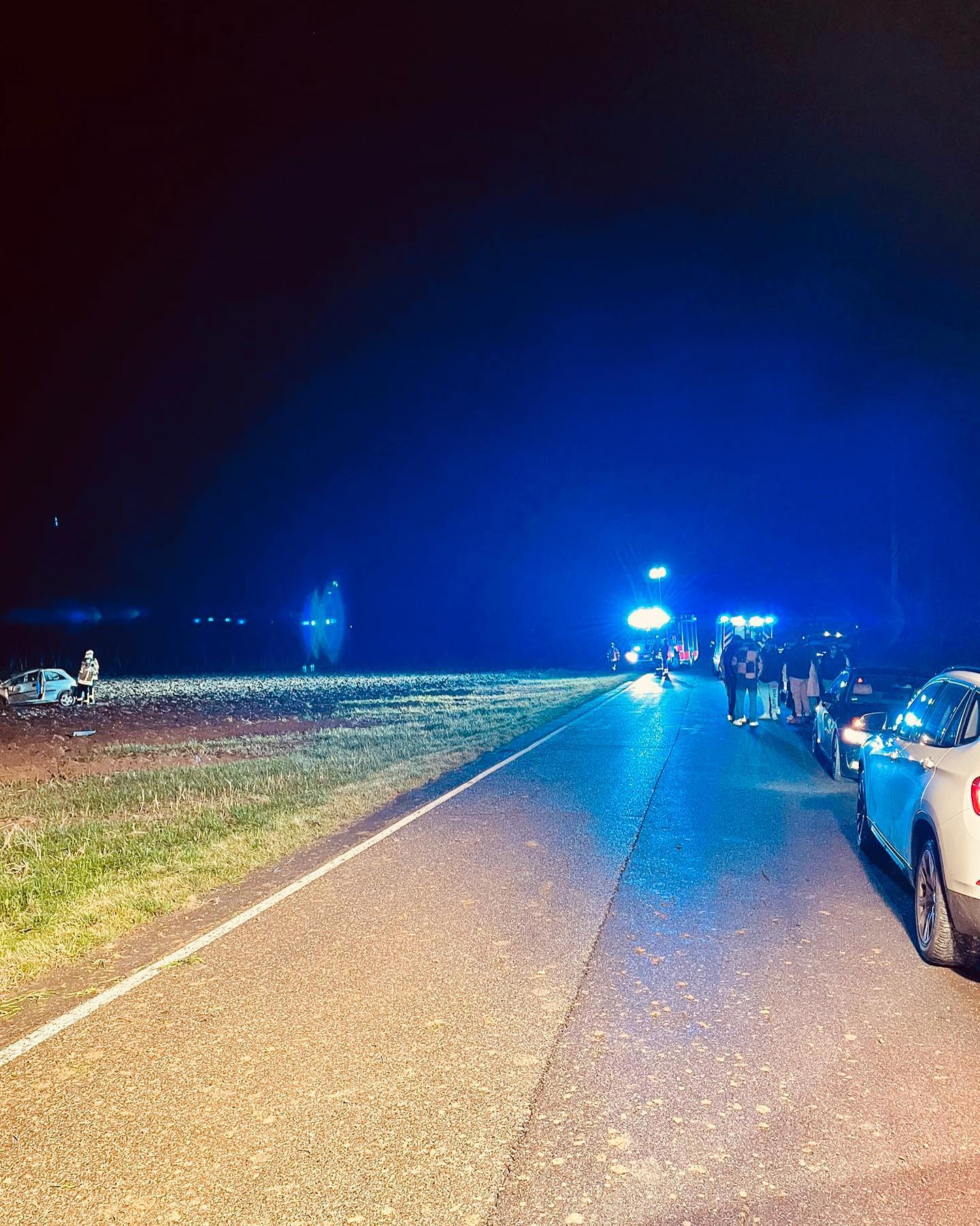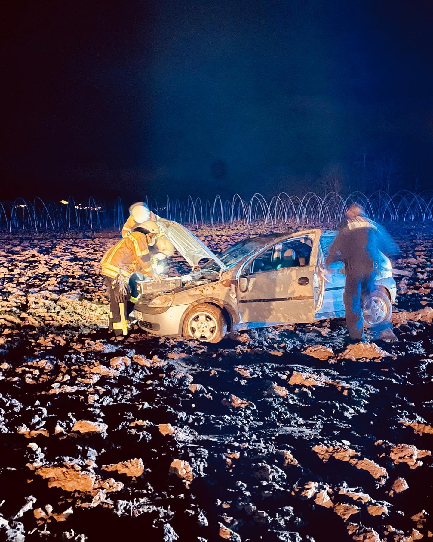 Nach Überschlag eines PKW, galt es das Fahrzeug und die Unfallstelle zu sichern. Die verletzte Person wurde vom Rettungsdienst versorgt.