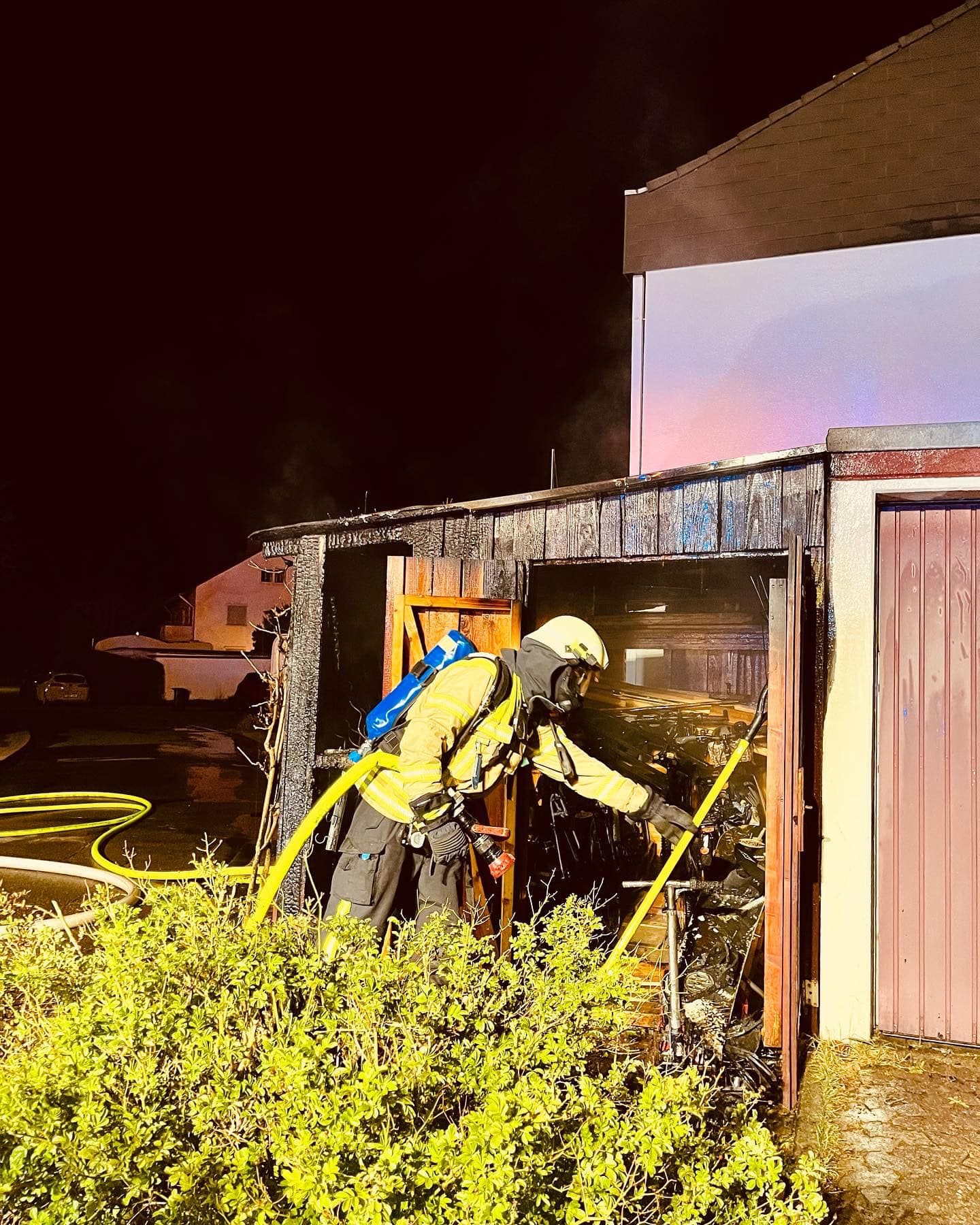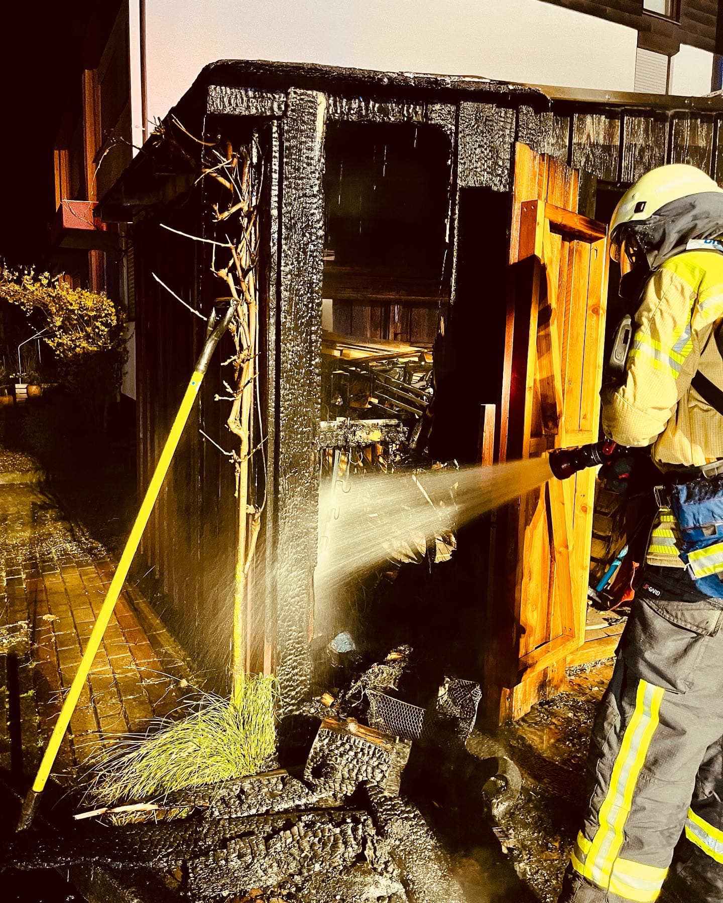 In der Nacht brannte ein Schuppen an einem Wohngebäude. Das Feuer war mit 2 C-Rohren schnell unter Kontrolle.